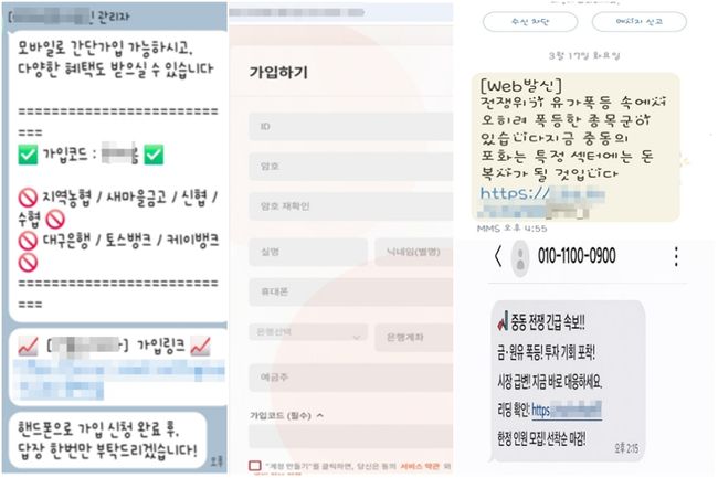 통합대응단은 신고센터에 접수된 사례를 바탕으로 ‘중동 사태를 악용한 3대 피싱 시나리오’를 공개했다. 가장 대표적인 유형은 ‘전쟁 수혜주’를 내세운 투자리딩 사기다. “고수익 보장”, “손실 시 원금 반환” 등을 미끼로 문자 메시지를 발송한 뒤, 메신저 리딩방으로 유인해 가짜 거래소 가입을 유도하고 투자금을 편취하는 방식이다.